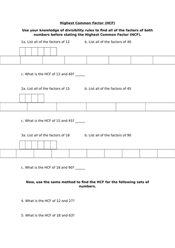 Determining Greatest Common Factors ... - Free Math Worksheets Welcome to The Determining Greatest Common Factors of Sets of Two Numbers from 4 to 100 (A) Math Worksheet from the Number Sense Worksheets Page at Math-Drills.com. This math worksheet was created on 2016-09-09 and has been viewed 9 times this week and 406 times this month. It may be printed, downloaded or saved and used in your classroom, home school, or other educational environment to help ... Math for Year 6 | Math Practice, Tests, Worksheets, Quizzes ... Year 6 math practice, questions, tests, teacher assignments, teacher worksheets, printable worksheets, and other activities for Australia School Math, Olympiad, SAT ... HCF - Highest Common Factor Math Worksheets|Printables PDF ... HCF worksheets for kids to practice HCF problems. The Highest Common Factor (H.C.F) of two (or more) numbers is the largest number that divides evenly into both numbers. In other words the H.C.F is the largest of all the common factors. The common factors or of 12 and 18 are 1, 2, 3 and 6. Worksheet on H.C.F. and L.C.M. of Polynomials | HCF and ... Worksheet on H.C.F. and L.C.M. of Polynomials covers various types of questions. Learn the steps to solve the highest common factor and lowest common multiple of polynomials by checking the sample questions covering different models here.